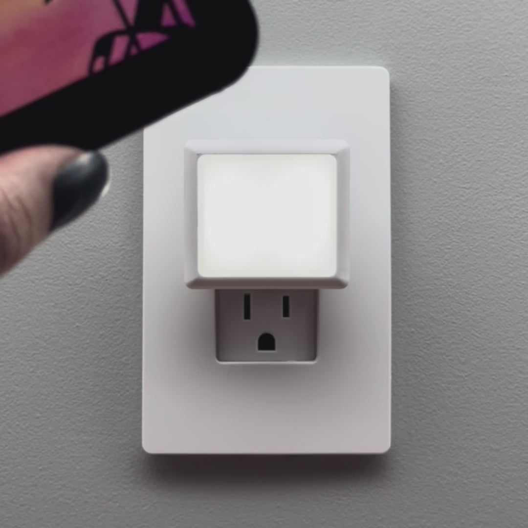 The laser cut cover slides easily over the included LED nightlight without interfering with the sensor or vents, and it automatically glows when the room darkens and stays cool to the touch.