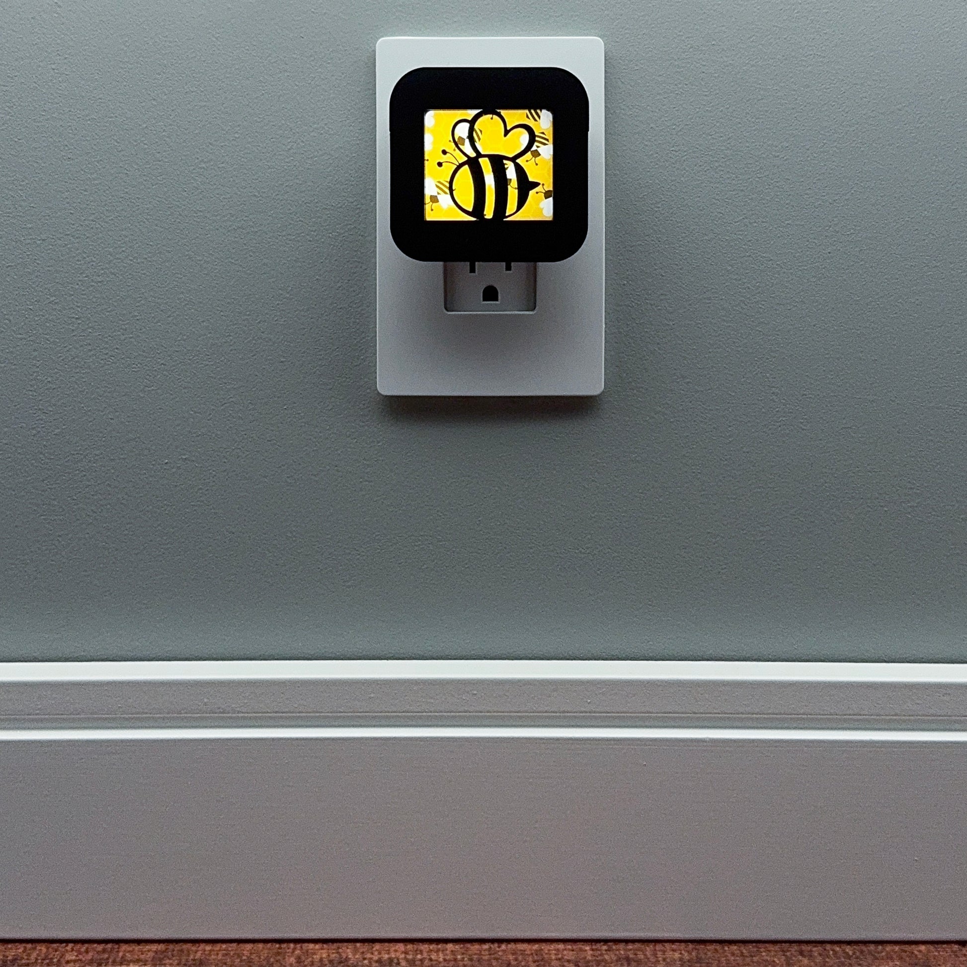 Illuminate your bathroom, hallway or bedroom with this cute bumble bee night light! The laser cut cover slides easily over the included LED nightlight without interfering with the sensor or vents, so it automatically glows when the room darkens and stays cool to the touch.