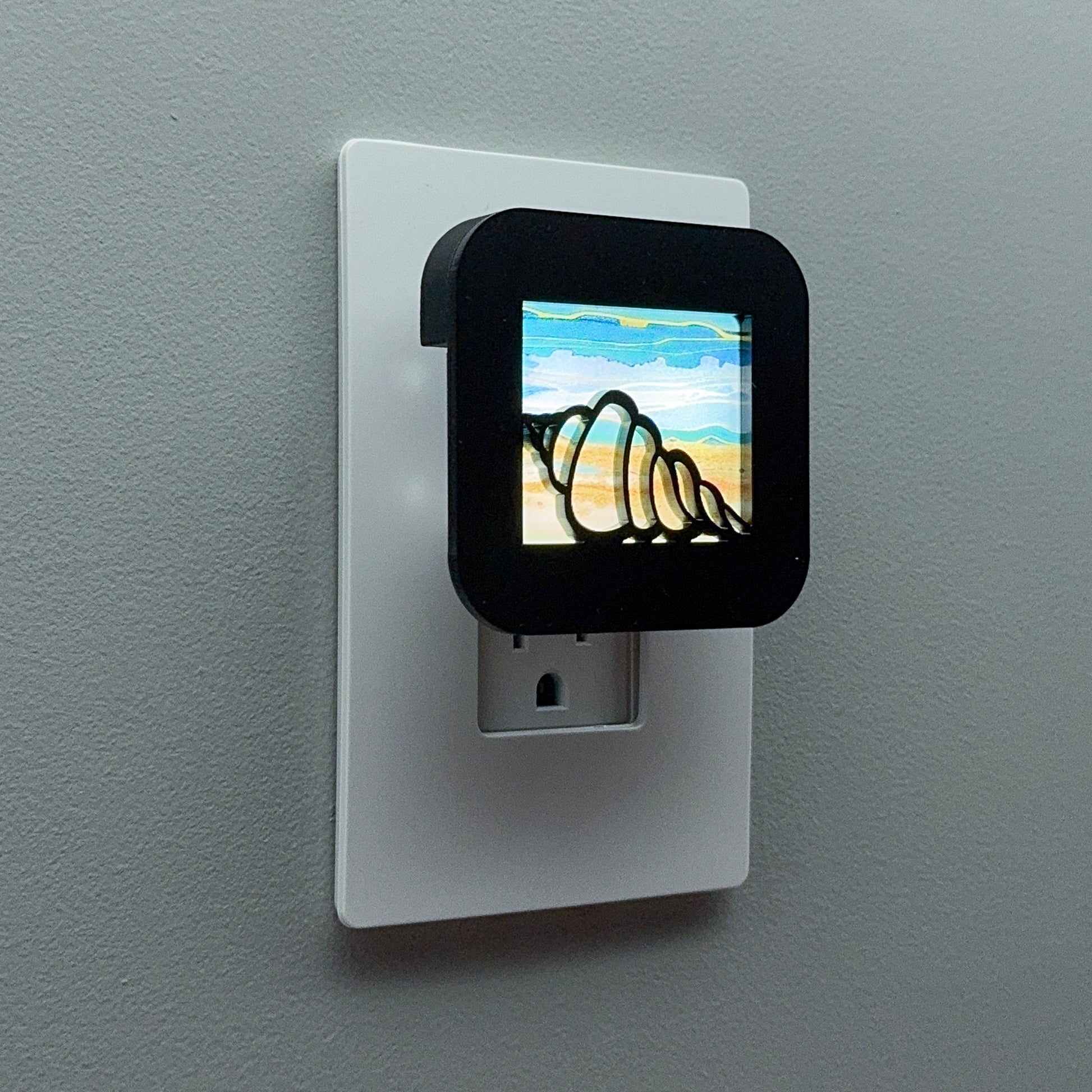 Illuminate your bathroom, hallway, nursery or bedroom with this seashell night light! The laser cut cover slides easily over the included LED nightlight without interfering with the sensor or vents, so it automatically glows when the room darkens and stays cool to the touch.