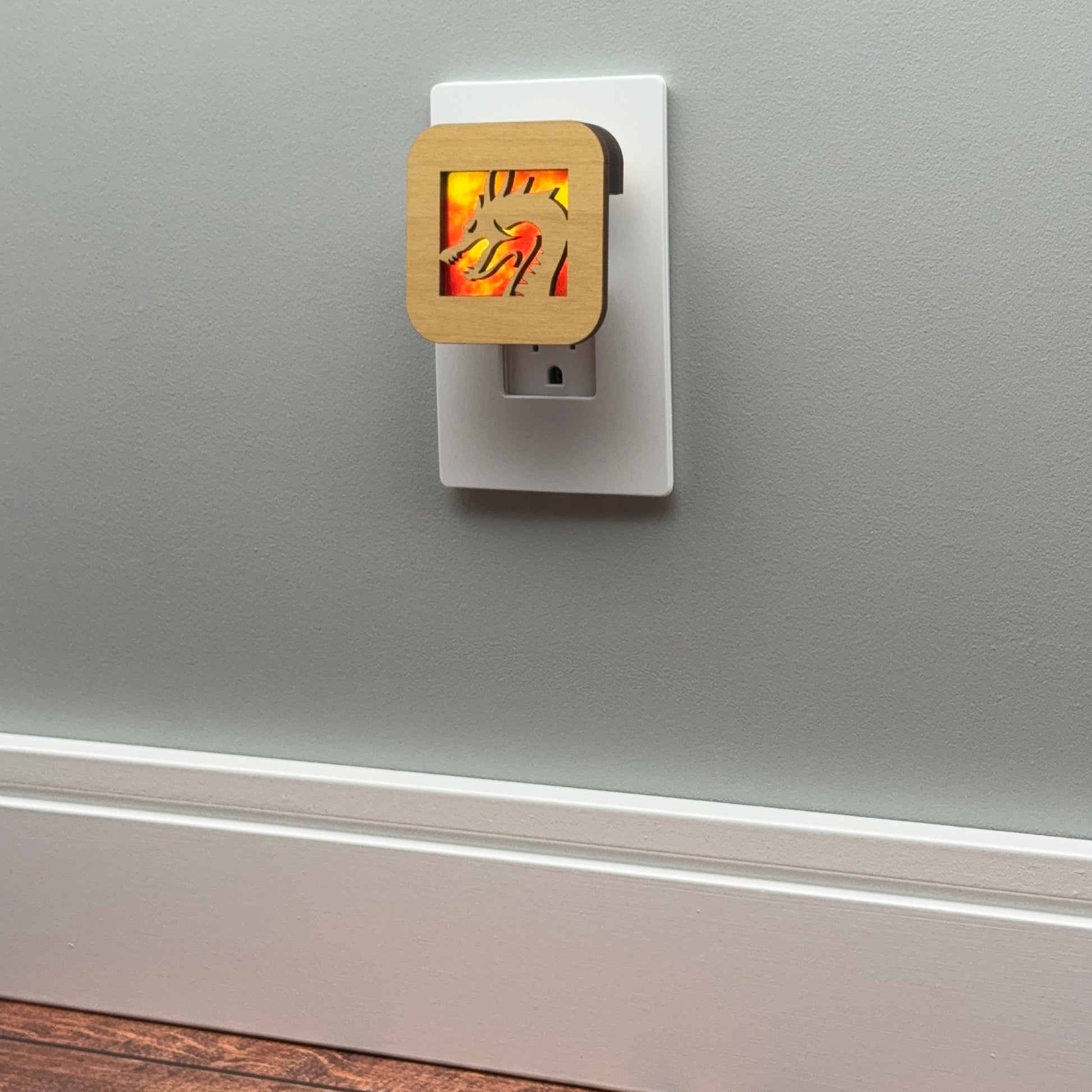 Whether you're a seasoned gamer, a fantasy bookworm, a lover of mythical creatures, or decorating a themed room, this dragon night light is a must-have! This design features a fierce fire-breathing dragon against a dramatic, fiery background that crackles with the vibrant hues of a blazing inferno.
