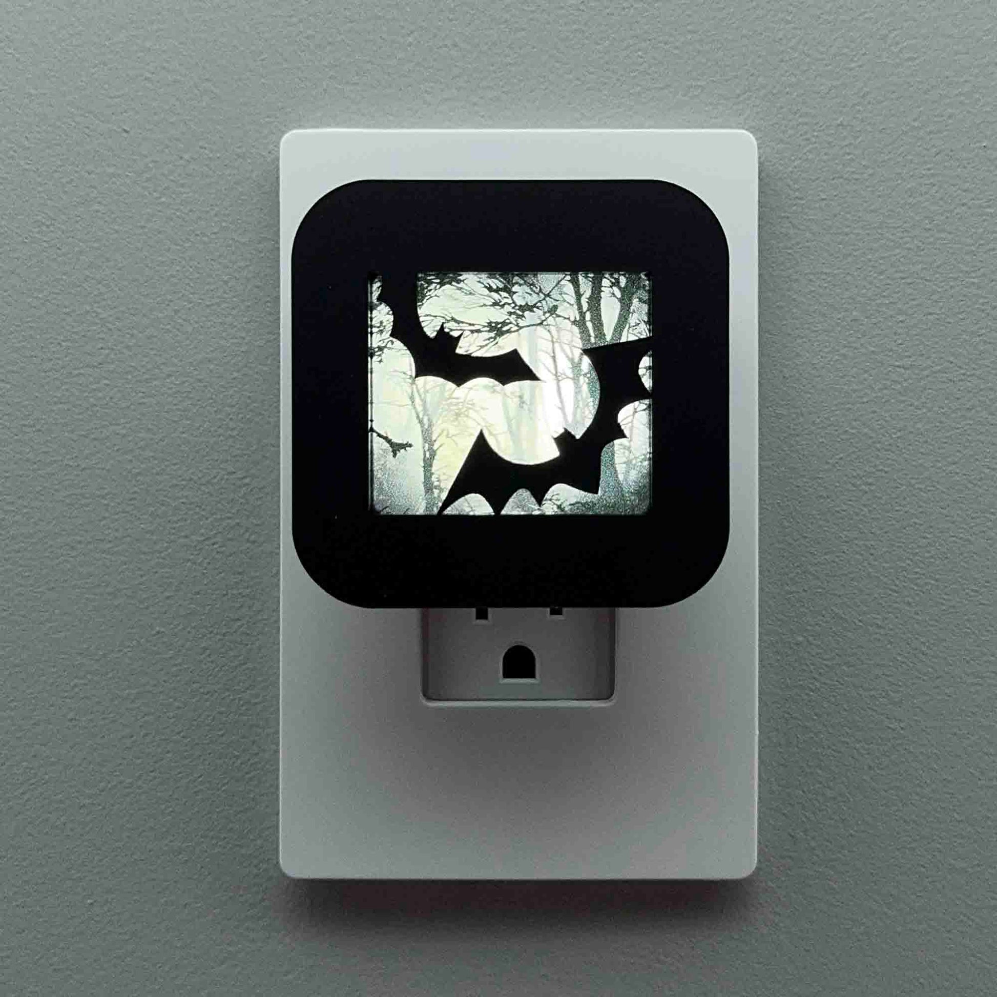 Illuminate your home for Halloween with this flying bats in a haunted forest night light!