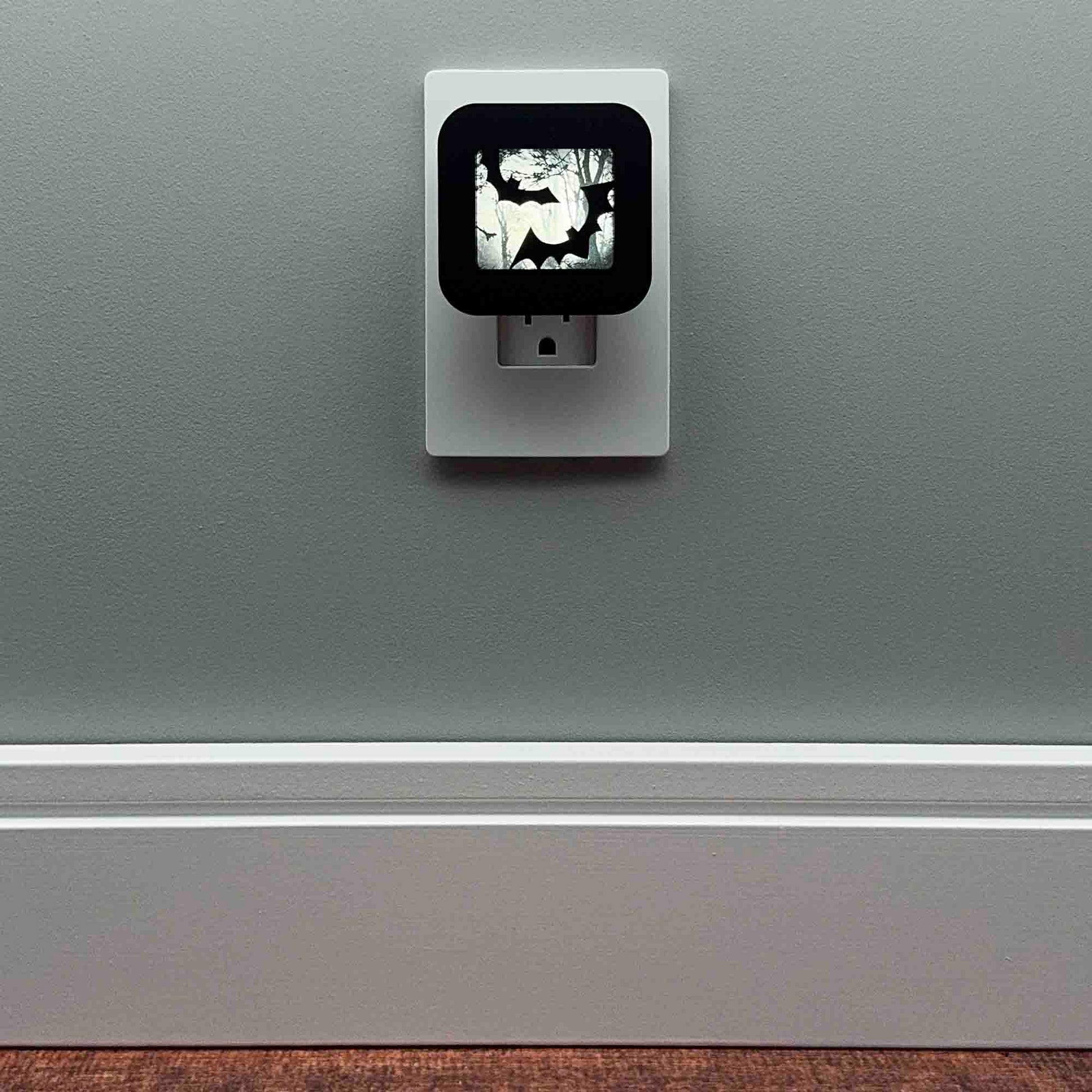The laser cut cover slides easily over the included LED nightlight without interfering with the sensor or vents, so it automatically glows when the room darkens and stays cool to the touch.