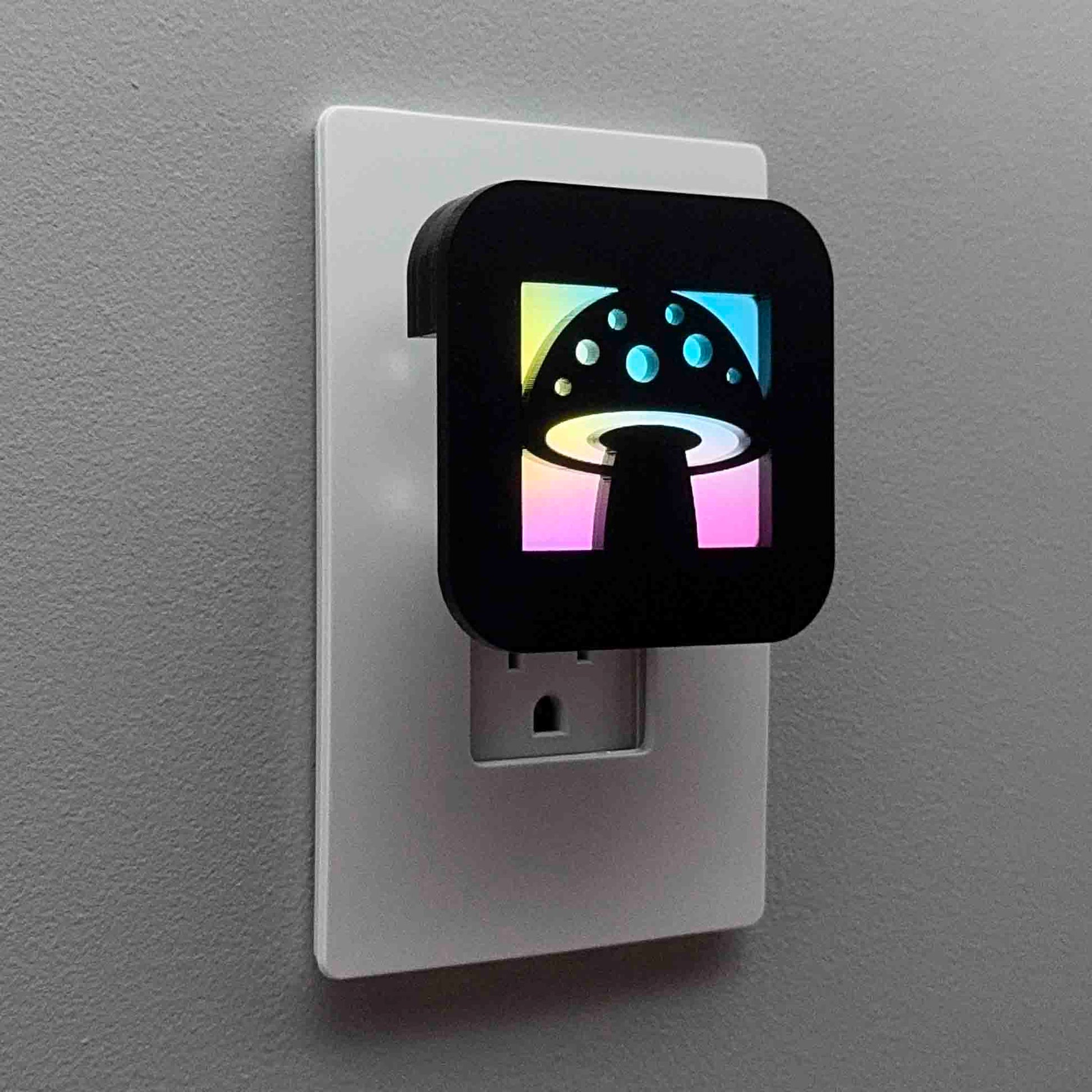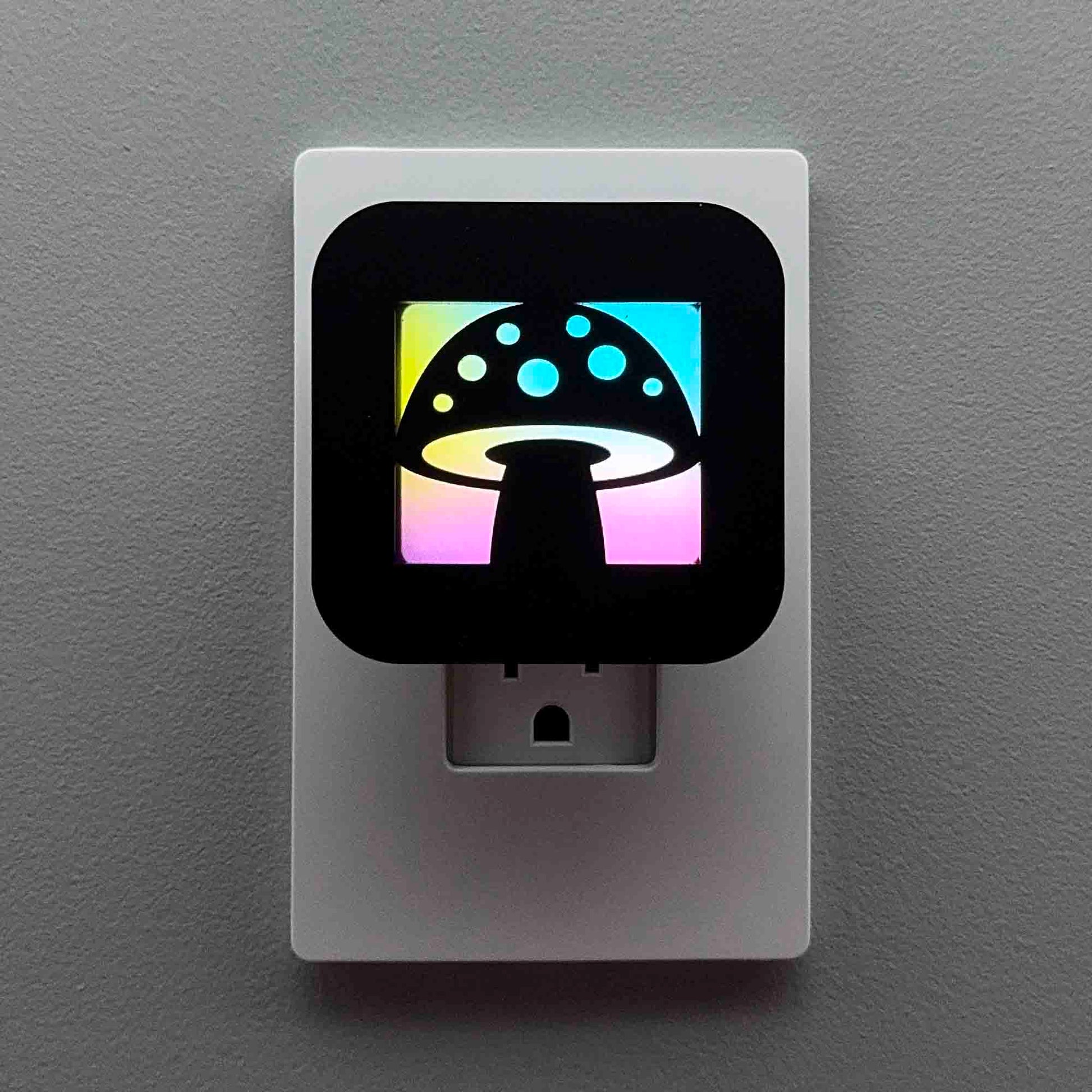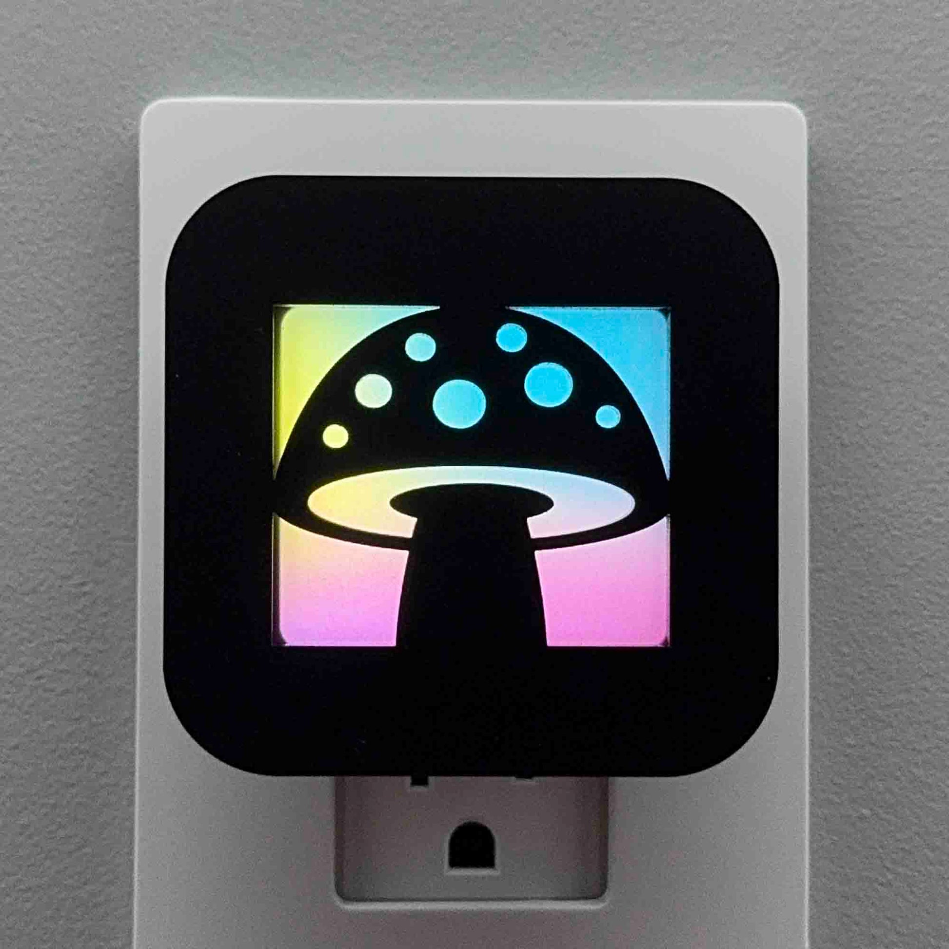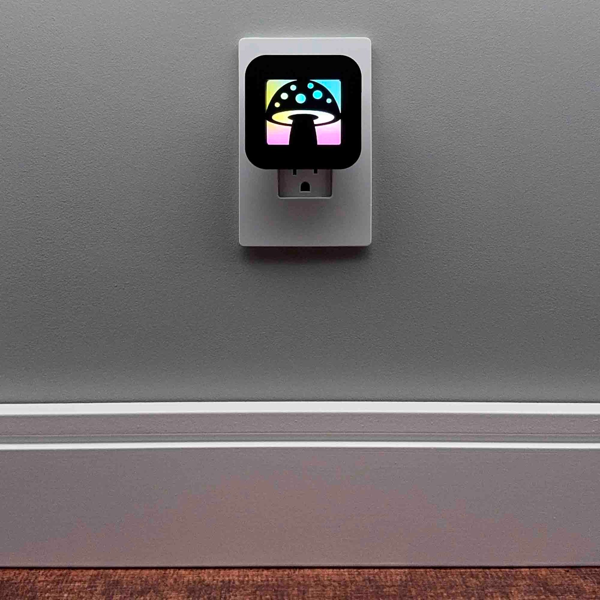 Illuminate your bathroom, hallway or bedroom with this groovy mushroom night light! The laser cut cover slides easily over the included LED nightlight without interfering with the sensor or vents, and it automatically glows when the room darkens and stays cool to the touch.