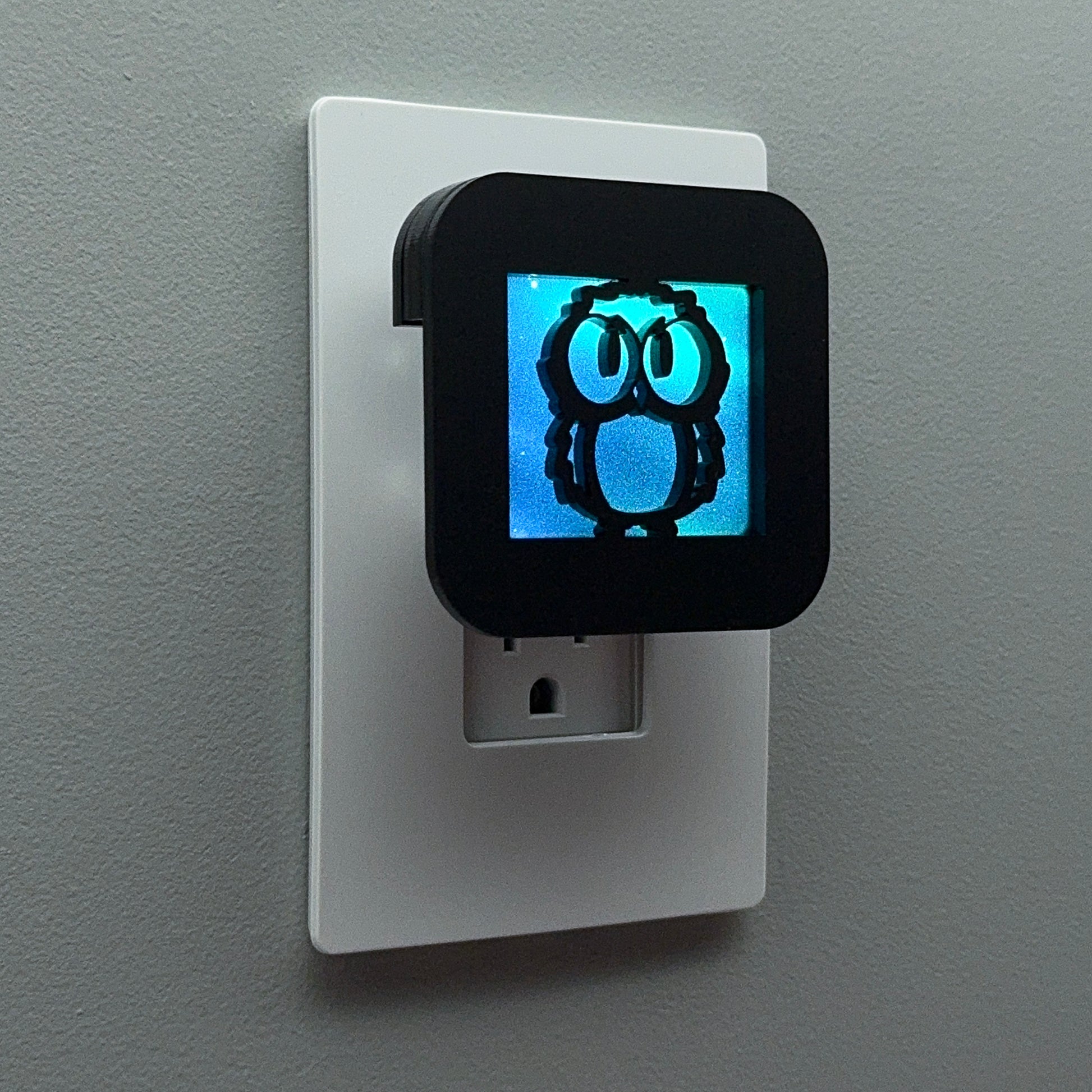 Illuminate your bathroom, hallway, nursery or bedroom with this cute owl night light! The laser cut cover slides easily over the included LED nightlight without interfering with the sensor or vents, so it automatically glows when the room darkens and stays cool to the touch.