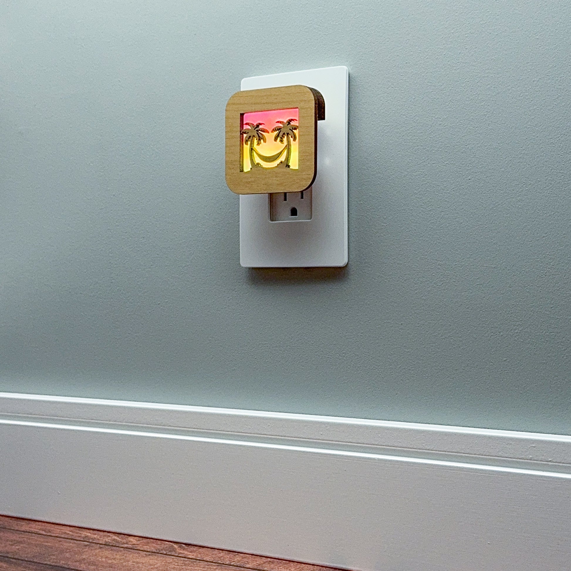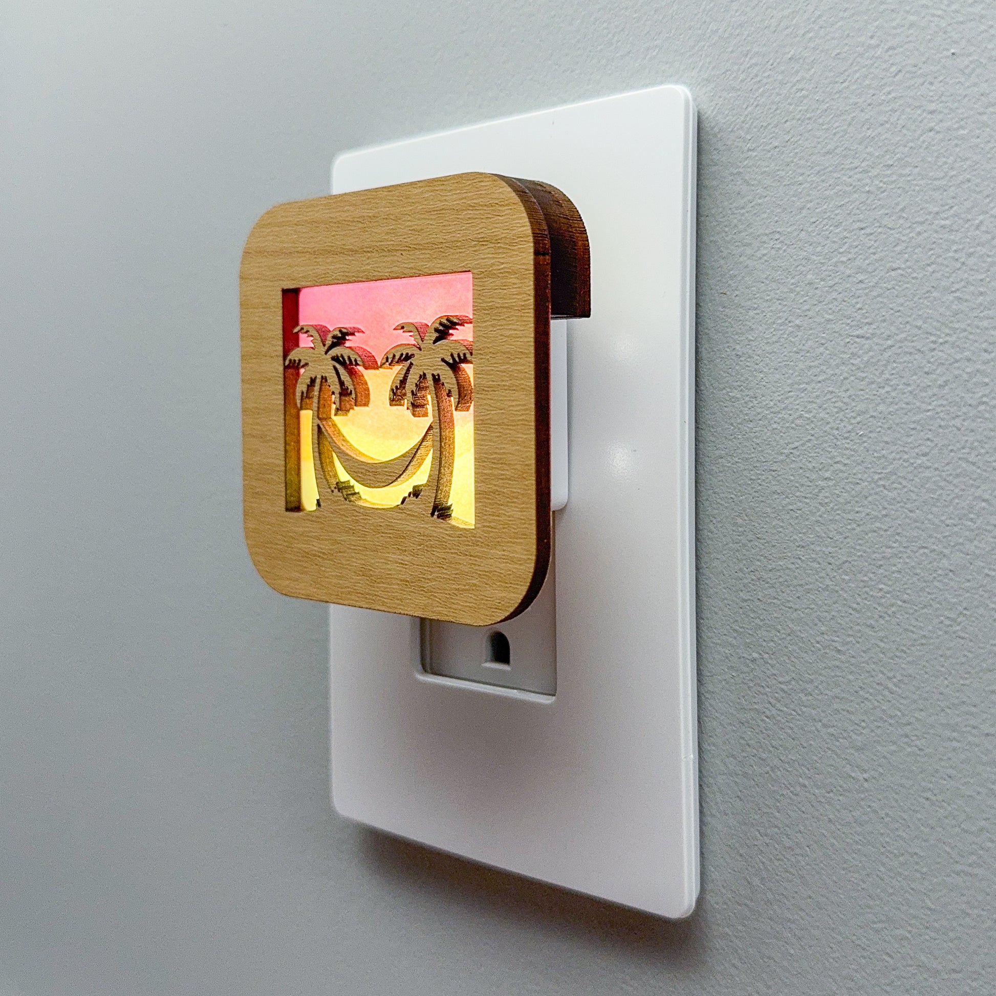 Illuminate your bathroom, hallway or bedroom with this beautiful palm trees sunset night light!