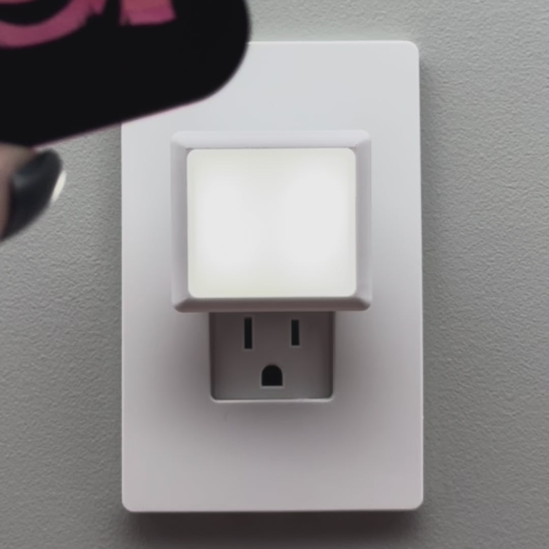 The laser cut cover slides easily over the included LED nightlight without interfering with the sensor or vents, and it automatically glows when the room darkens and stays cool to the touch.