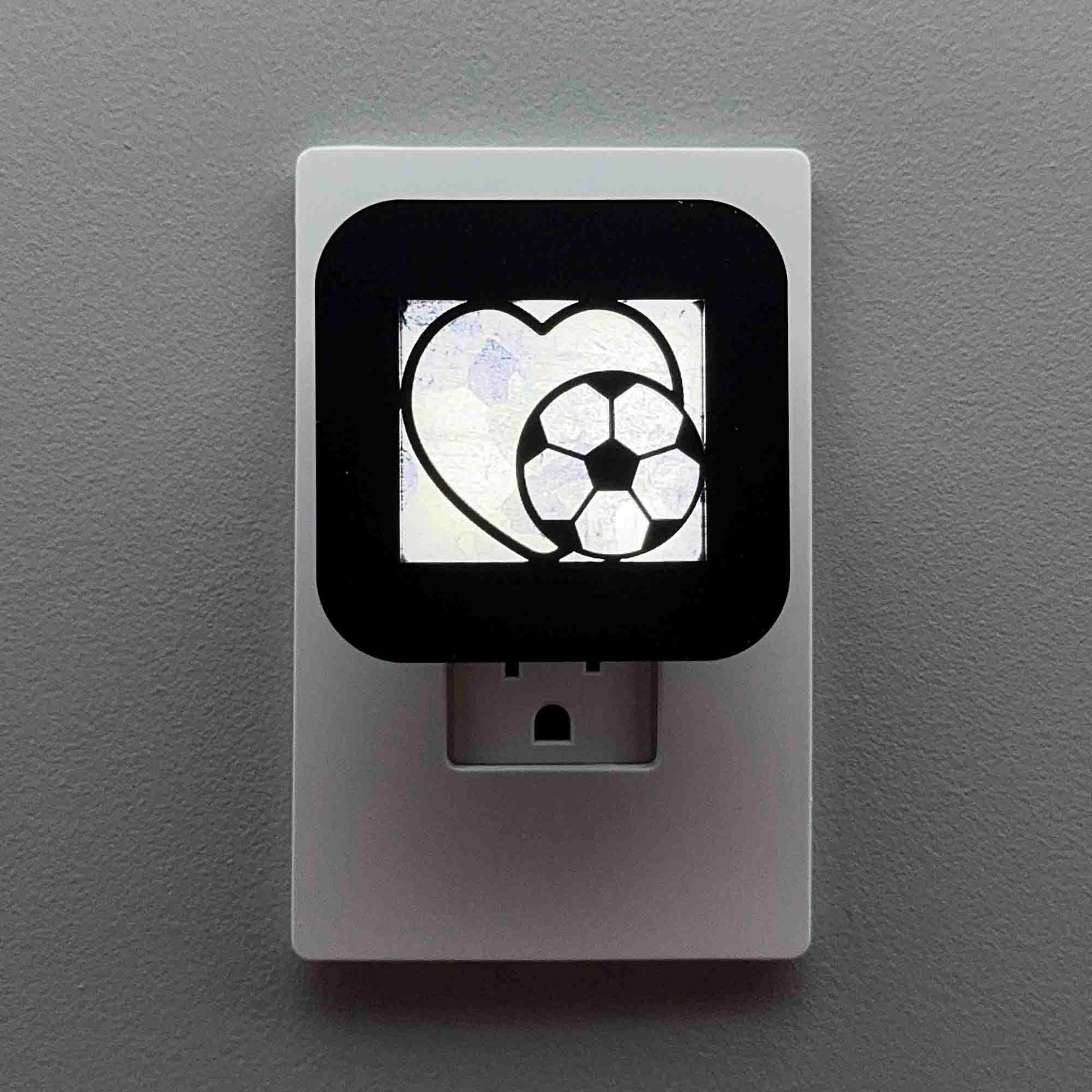 Illuminate your bathroom, hallway, or bedroom with this soccer ball heart night light!