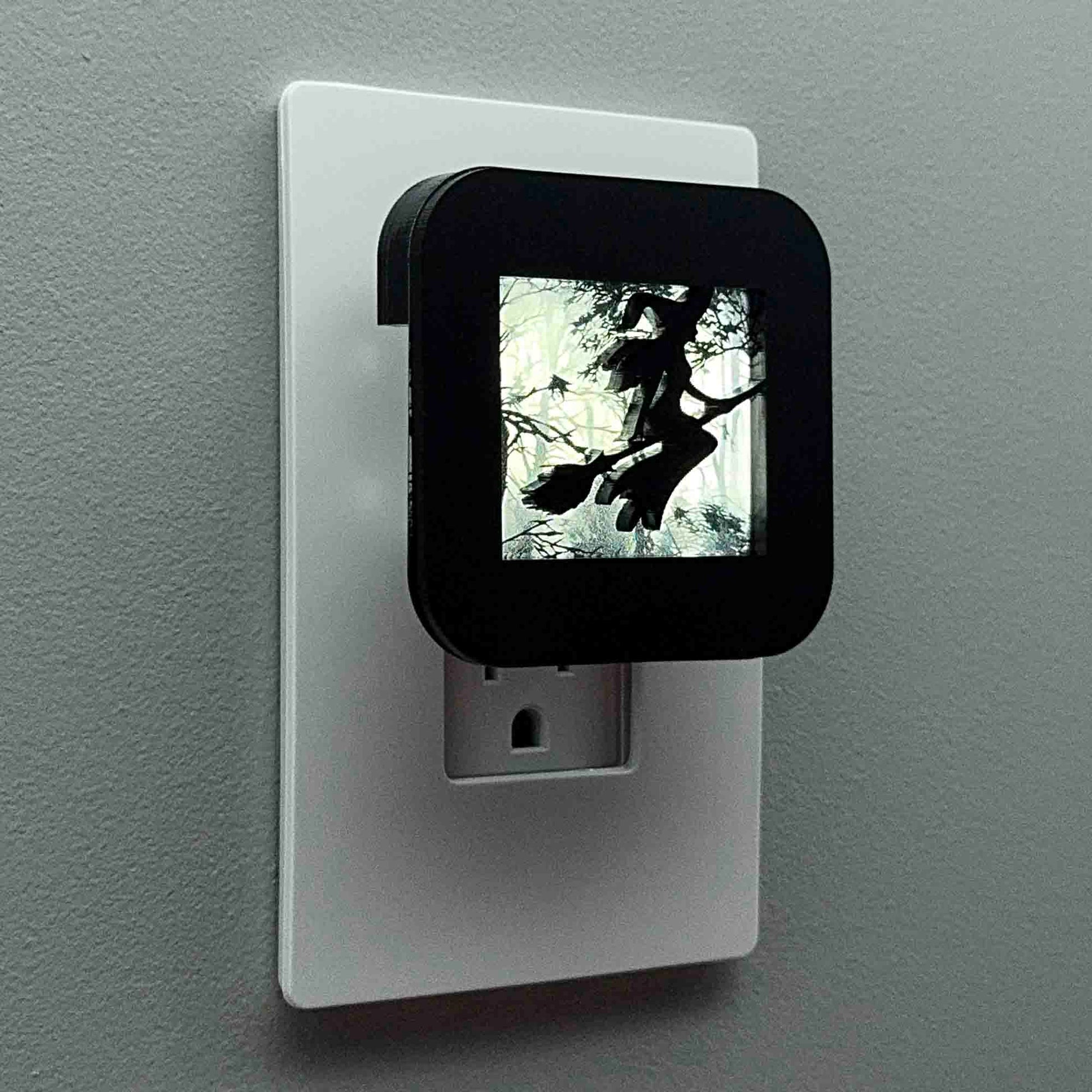 The laser cut cover slides easily over the included LED nightlight without interfering with the sensor or vents, so it automatically glows when the room darkens and stays cool to the touch.